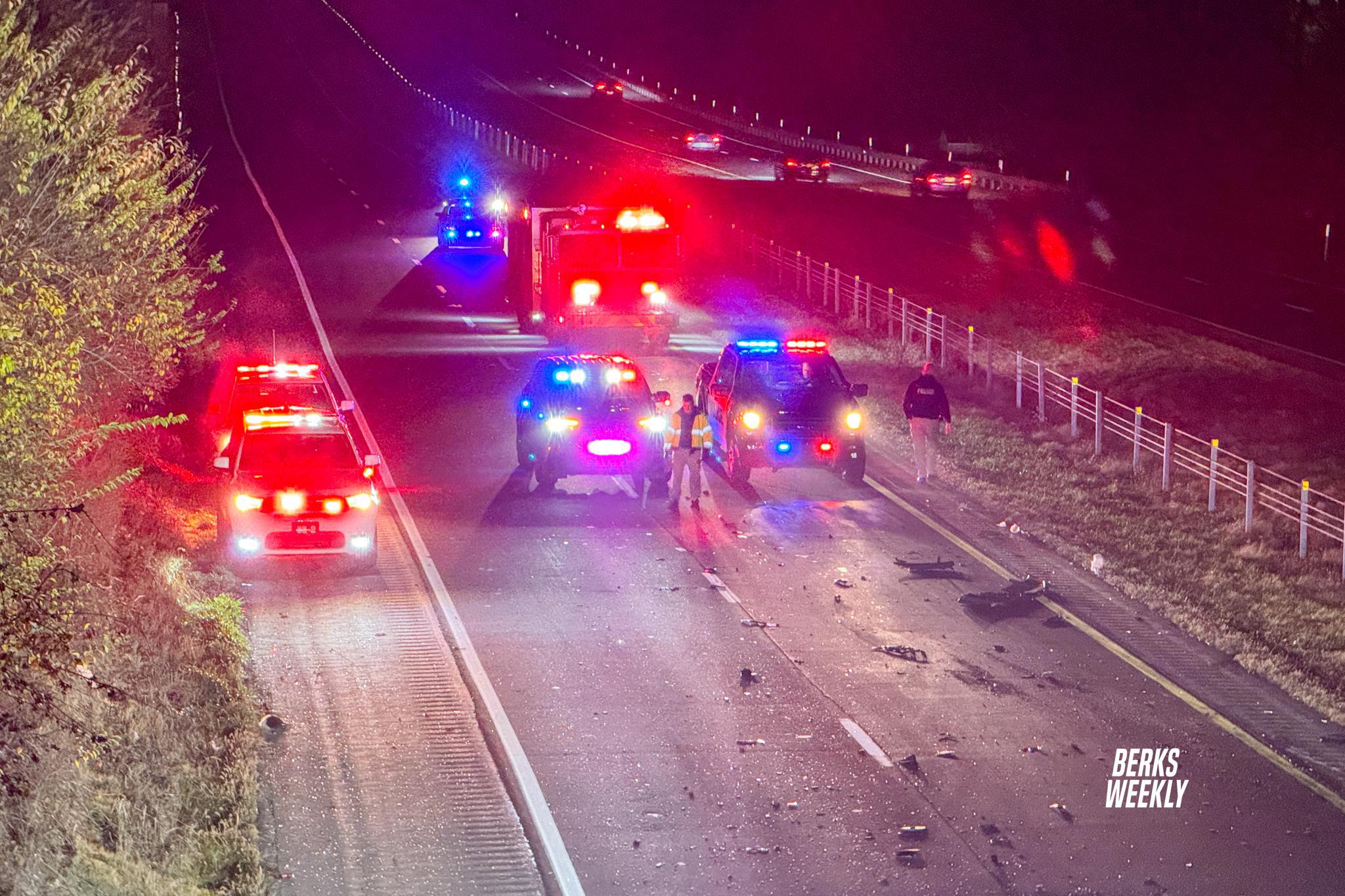 The coroner has been called to the scene of a vehicle accident Friday night on 222 south in Muhlenberg Township near Stoudts Ferry Bridge Road, initially reported to be a vehicle traveling the wrong way that struck a tractor trailer head-on. 222 south is closed for the investigation.