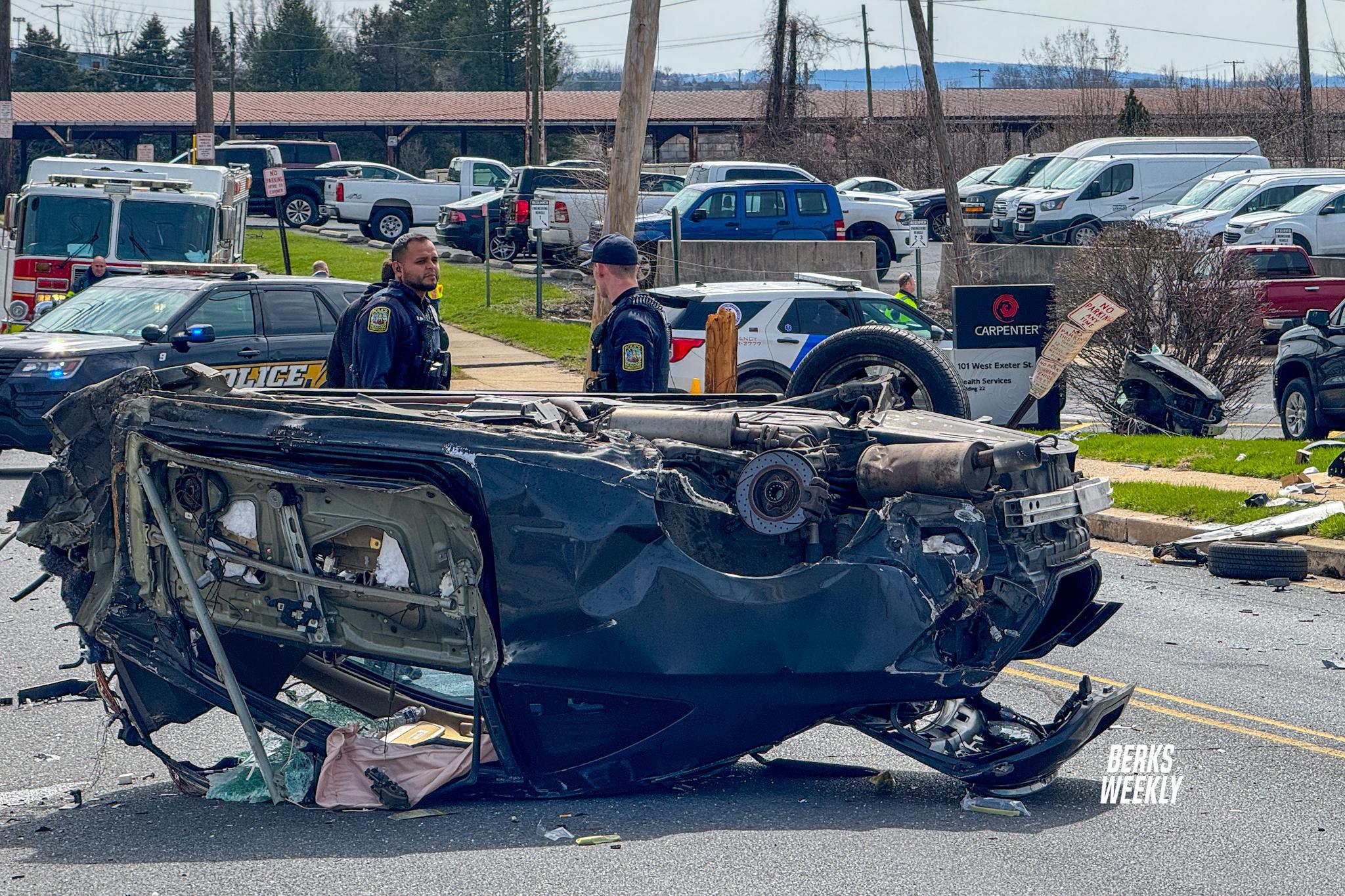 Reading Police and EMS were dispatched Wednesday afternoon to the area of North Front and Exeter streets in Reading following a serious crash involving a vehicle and a utility pole.