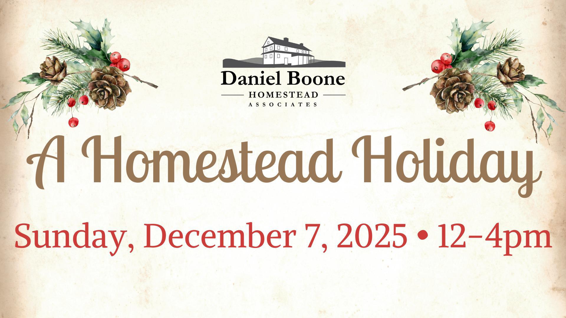 Don’t miss this great opportunity to take a stroll through Christmas Past and enjoy an afternoon of old-fashioned, good cheer! Complimentary hot chocolate and hot wassail will also be available throughout the afternoon. Admission: Adults $10.00, Seniors (65+) $8.00, Youth (6-17) $5.00. Children 5 and under and DBHA members are free. Please, no pets and no smoking. The event is presented and funded by The Daniel Boone Homestead Associates.